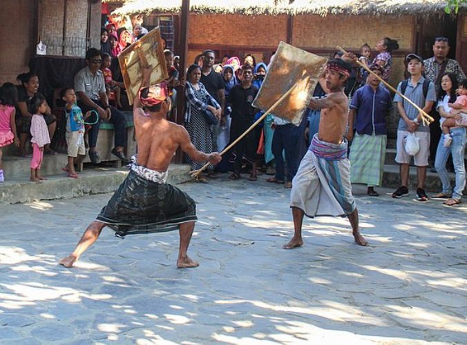 Berikutnya adalah tradisi peresean dari Pulau Lombok, tepatnya suku Sasak. Tradisi ini menguji ketangkasan antar laki-laki, namun tetap diwarnai oleh semangat persaudaraan.